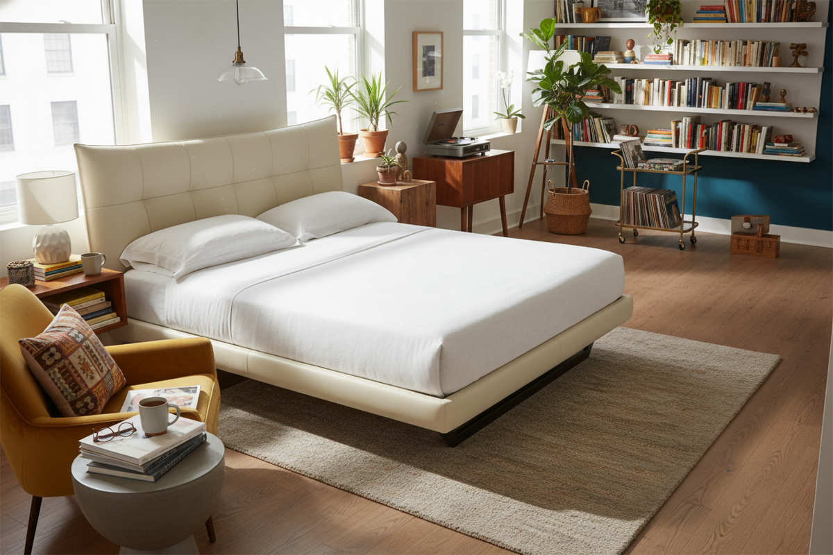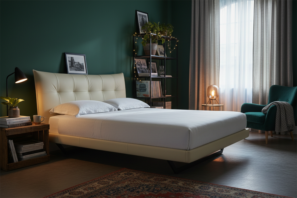 The Calyx Bed reimagines rest through the lens of organic architecture. Its defining form, sculpted from curved birch plywood, creates a gracefully enveloping silhouette that offers both visual harmony and a profound sense of sanctuary. This feeling of nurtured comfort is achieved through a meticulous layering of varying-density polyurethane foam and polyester wadding, tailored to provide resilient support. The artistry is revealed in the traditional hand-tied stitches that secure the upholstery—a deliberate homage to time-honored craft. Supported by refined metal feet, the Calyx Bed is a serene statement where natural form and human craftsmanship unite to define modern tranquility.