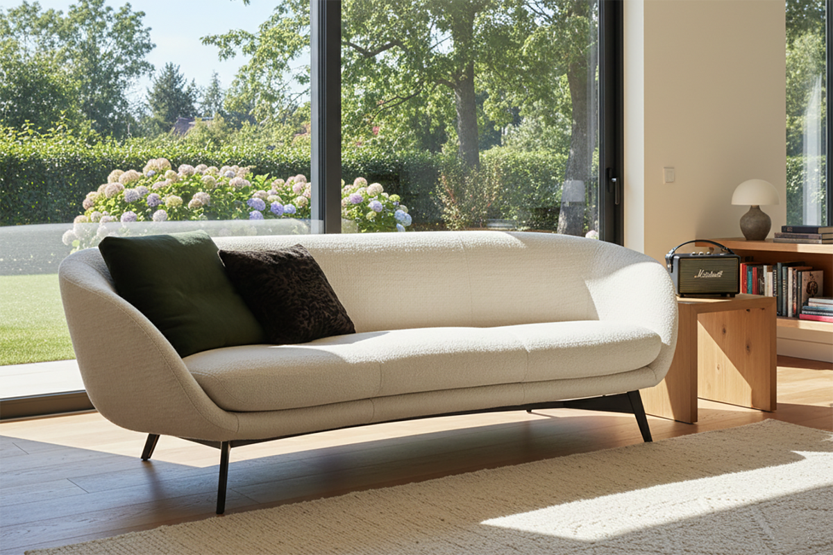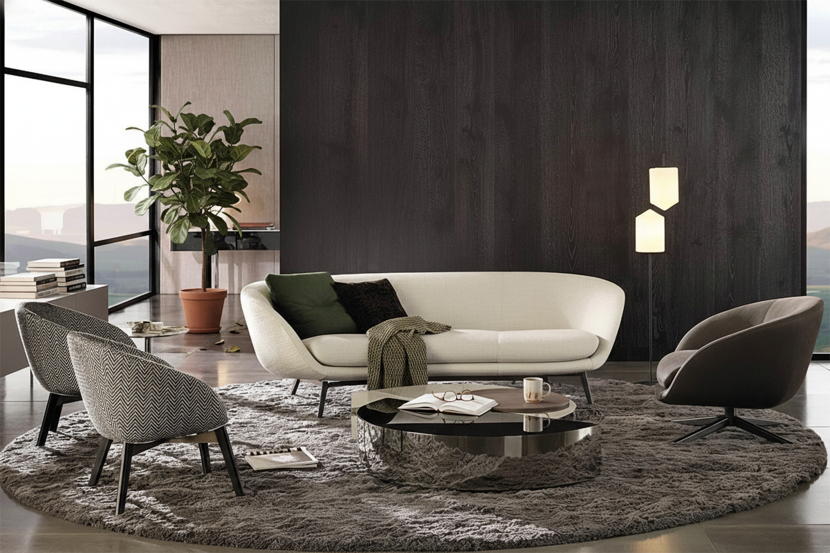 The Concerto Sofa is a graceful homage to mid-century design, reorchestrated for contemporary living. It masterfully reinterprets vintage lines with a sophisticated, modern silhouette that embraces both the plush seating forms and the refined external upholstery. The ensemble’s most striking movement is the unexpected harmony of a fixed bronze-toned metal cross-structure with feet sheathed in warm Moka-shaded oak—a detail that celebrates the virtuosity of combining disparate materials with intention and grace. Available in an array of typologies, from enveloping armchairs and elegant dining chairs to inviting sofas and ottomans, each piece is designed to be a versatile focal point. Select revolving versions add a note of dynamic interaction with their elegant wooden-spoke bases. The Concerto collection doesn’t just furnish a space; it composes an atmosphere of timeless comfort and curated charm.