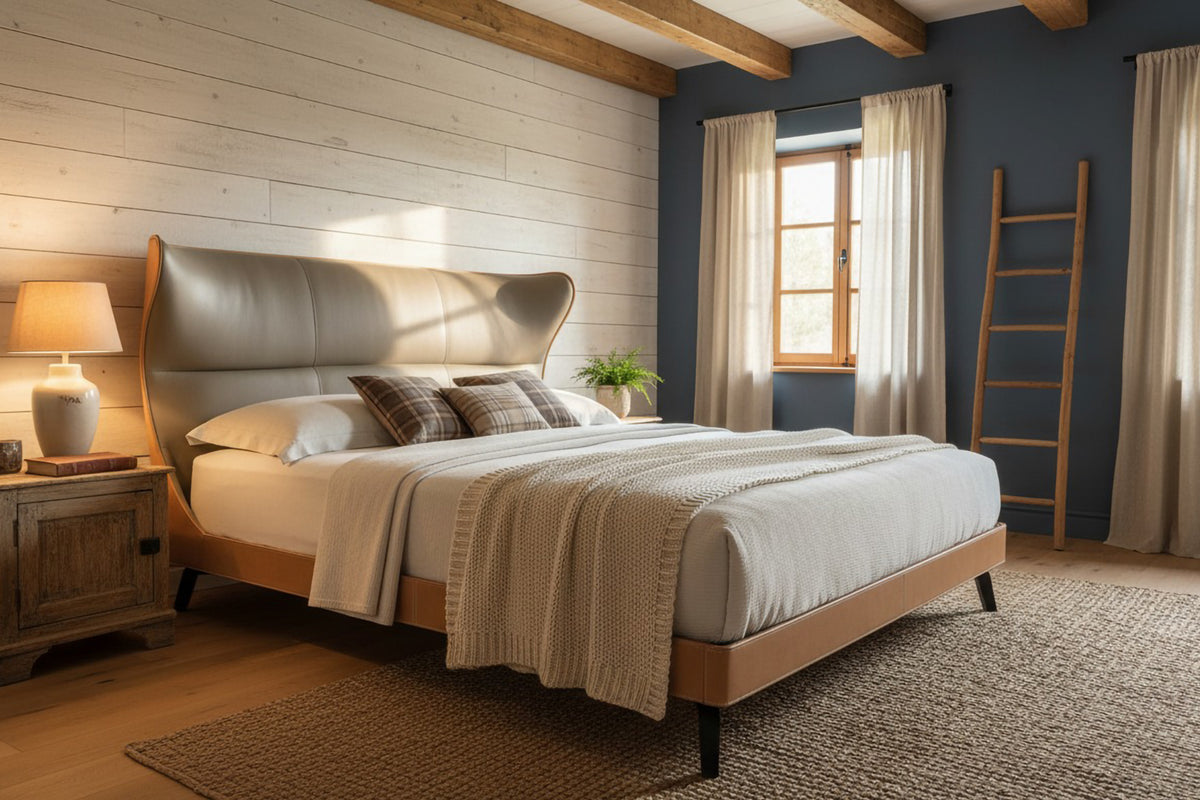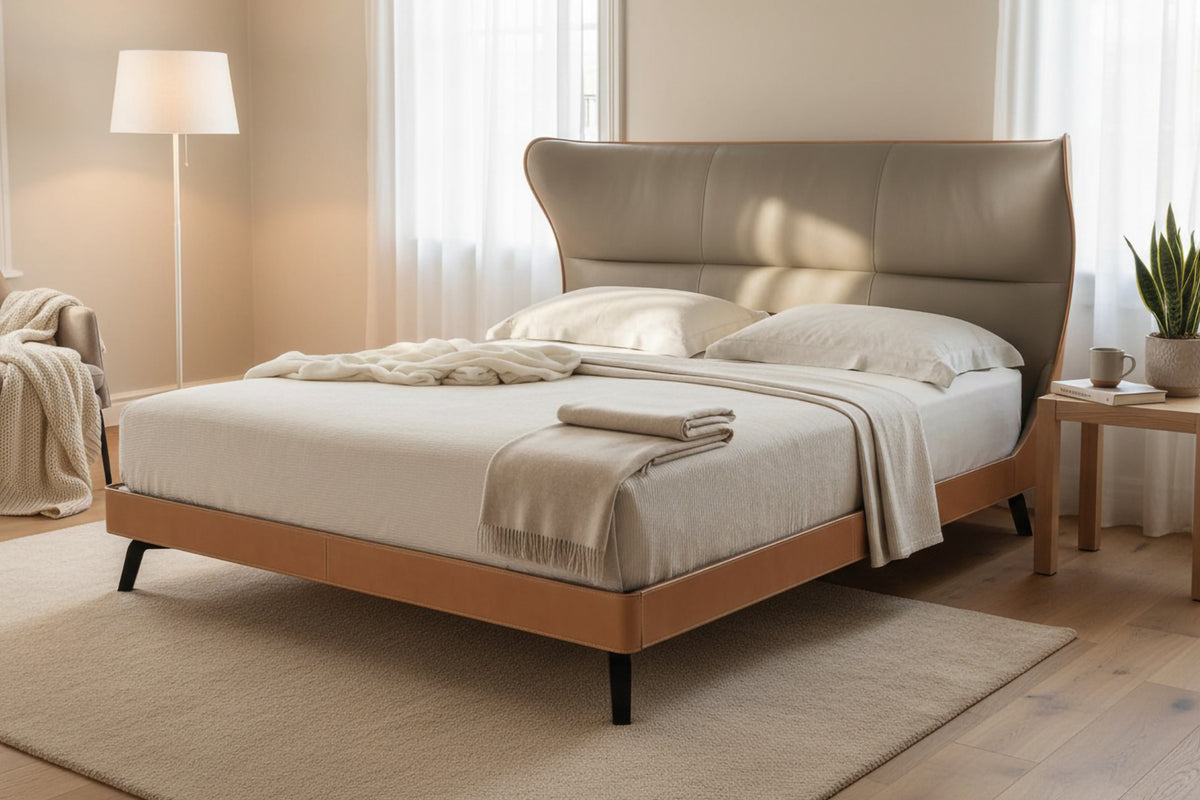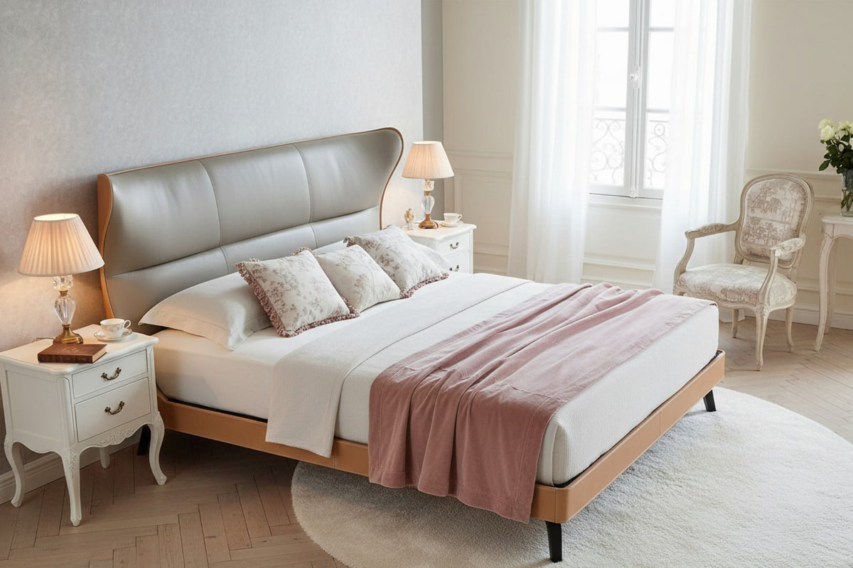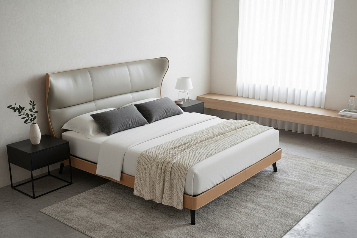 The Lazzaro Bed redefines bedroom elegance through its sculptural presence and masterful craftsmanship. Designed with generously proportioned, softly rounded forms, it commands attention as both a functional centerpiece and an artistic statement. The striking headboard features enveloping curves that create a sense of sanctuary, inviting relaxation and rest. Expertly tailored with contrasting stitching that highlights the harmonious blend of materials, this bed transforms the bedroom into a curated space of refined comfort and modern sophistication. Its elevated design balances visual lightness with substantial comfort, making it an ideal choice for those who appreciate artisanal details and timeless style.
