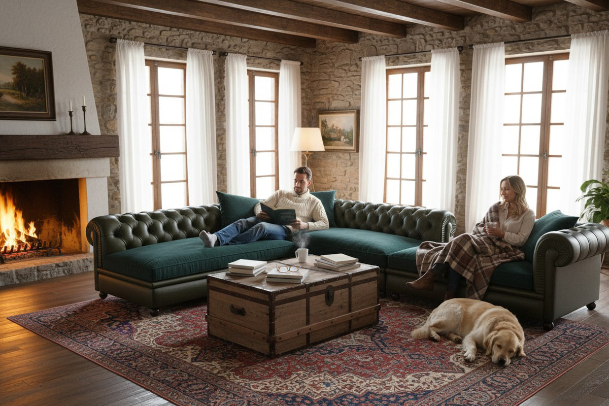 - Comfort System: Seat cushions combine goose down with high-resilience polyurethane foam stabilizers for adaptive support and shape retention. Backrest and armrests padded with hand-shaped vegetable horsehair for breathable, resilient comfort
